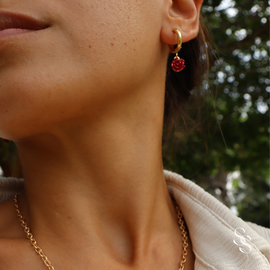 Scarlet Rose Hoops Earrings