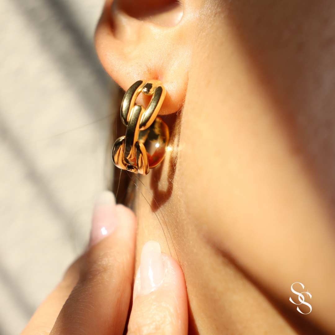 Introducing the sassy Link Me Gold Hoop Earrings - a stunning fusion of classic and contemporary design that will effortlessly elevate your style. These exquisite earrings feature a gold link-style chain look that delicately forms a hoop shape, creating a timeless and sophisticated look.