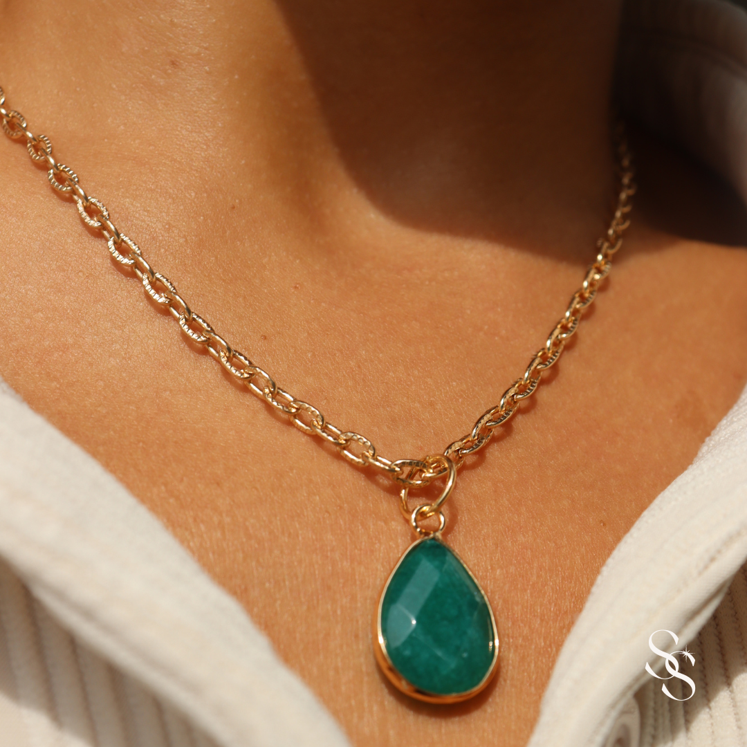 The Malay Jade Cascade Necklace is a true testament to elegance and versatility. The teardrop pendant showcases the rich green hues of the Malay Jade, radiating a sense of tranquility and serenity. The gold-plated chain adds a touch of sophistication, perfectly complementing the natural allure of the jade stone.
